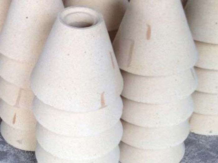 不管是整體式,還是分體式袖磚,出鋼口袖磚一般外形為圓形,內孔均是通孔的圓形結構,內孔大小根據出鋼時間確定,壁厚一般為50~ 100mm,孔的形狀分為直通形和喇叭形。實驗證明,喇叭型內孔且入口形狀為圓形的出鋼口出鋼速度較大,這就意味著鋼水與出鋼口之間的干擾減弱,水流比較平穩,出鋼口的圓形入口縮短了出鋼時間。