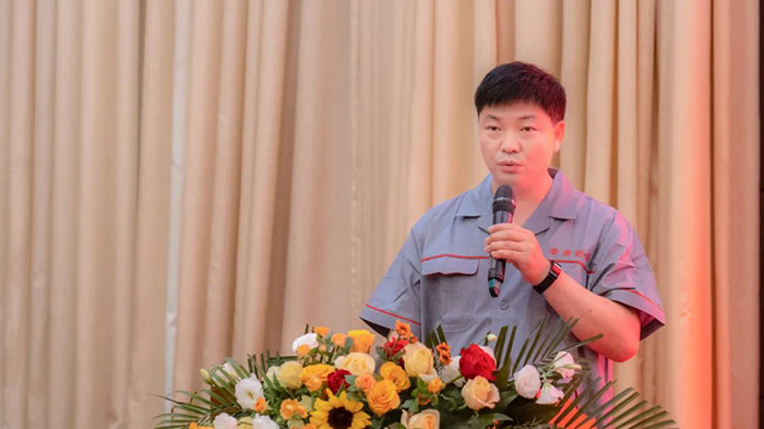 活動伊始,榮盛科技集團董事長楚科奇首先發表了激情洋溢的講話。楚總指出,榮盛新威自掛牌以來,引起同行們的高度關注,特別是去年7.20洪水后,榮盛新威在宋總的領導下,沒有在困難面前低頭,而是越挫越勇,夜以繼日奮戰在一線,目前以嶄新的面貌呈現在同行面前。他衷心地感謝了宋總的努力與付出,并號召大家要學習宋總「以奮斗者的姿態砥礪前行,以追趕者的執著奮勇當先,以拼搏者的堅毅擔當實干」的企業家精神。