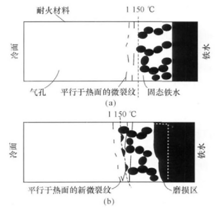 圖3:爐缸耐火材料內襯損毀機制示意圖