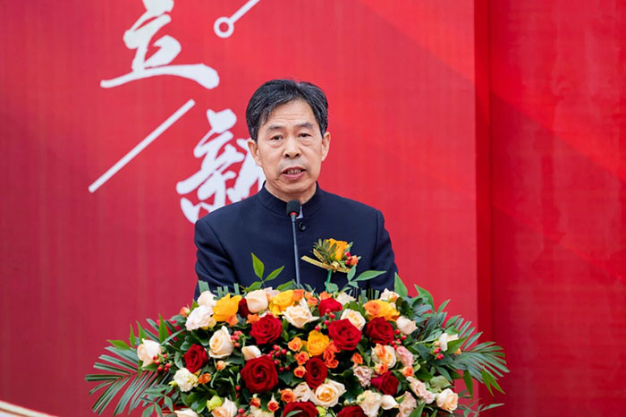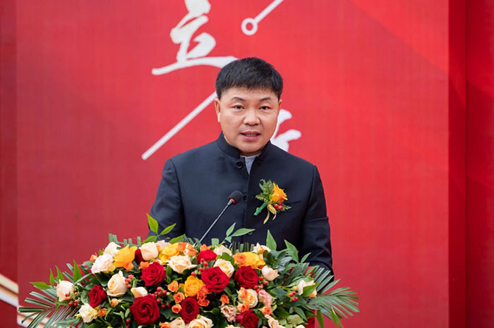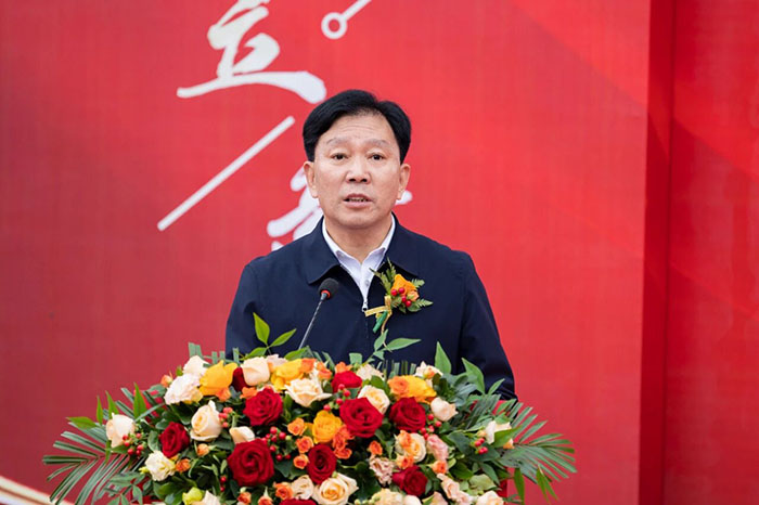 zui后,在熱情洋溢的現場氛圍中,河南榮盛科技集團董事長楚科奇發布了致辭。他首先代表集團向蒞臨現場的各位領導、嘉賓及全體員工表示熱烈歡迎與誠摯感謝。楚總回顧了集團十二年的發展歷程,指出新材料生產基地的建成,凝聚了全體榮盛人的智慧、汗水與堅守,是企業十二年奮斗征程上的重要里程碑,更是企業面向未來、決勝未來的戰略新起點。楚總強調,新工廠的順利落成,得益于各級主管部門的大力支持與高效服務,也離不開集團管理層的高效協同與一線團隊的奮力拼搏。他特別感謝了王海軍總經理及集團管理層,稱贊其在項目戰略定位與資源配置中發揮的關鍵作用;同時,他也向宋廣林總經理及全體建設者致敬,感謝他們不畏艱辛、全力以赴,將一片荒蕪之地打造為現代化智能工廠。
