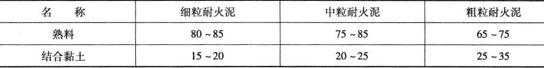 常用的耐火泥有粘土質(zhì)、高鋁質(zhì)、硅質(zhì)、鎂質(zhì)耐火泥等。在砌筑粘土耐火磚時,應(yīng)用粘土質(zhì)耐火泥。粘土質(zhì)耐火泥是由粘土質(zhì)熟料和結(jié)合粘土組成,其成分見下圖。